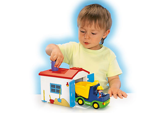 Ciężarówka przyda się nie tylko na budowie, ale można nią także dowozić towar do sklepu. Garaż może pełnić funkcję sortera. Dzięki otworom w dachu dzieci mogą załadować ciężarówkę ucząc się rozpoznawania i dopasowywania kształtów.
