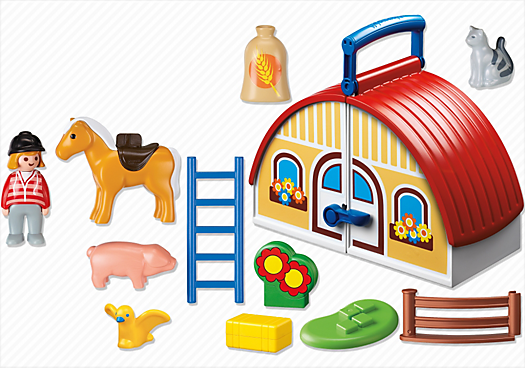 Zestaw ten ma dużo miejsca dla zwierząt. Na poddaszu znajdziesz miejsce na przechowywanie siana, a przed stajnią urządź ogrodzonym wybiegiem dla koni. W każdej chwili możesz złożyć zestaw i przenosić go jak w walizce w dowolne miejsce.