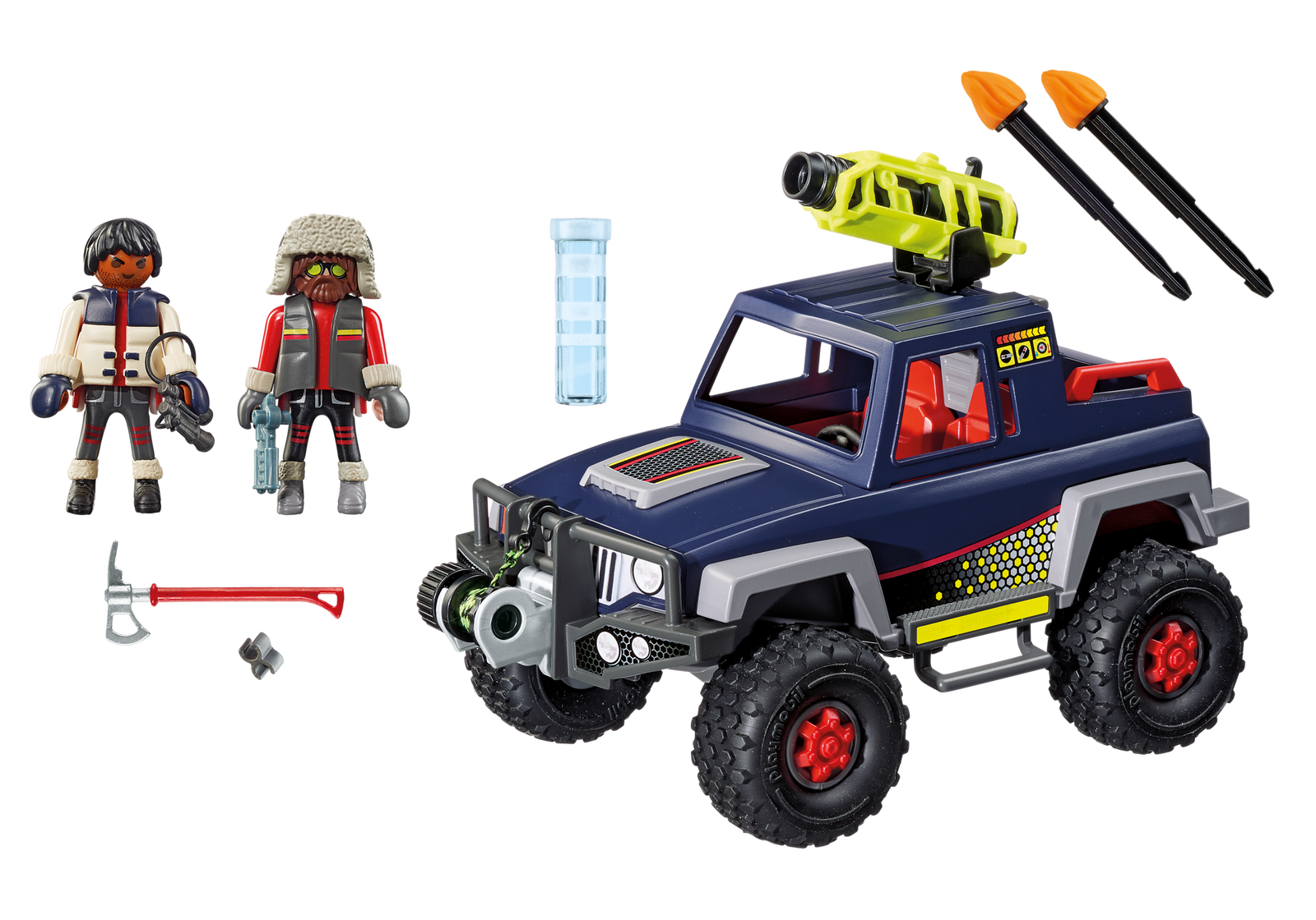 Terenowy pojazd jest własnością dwóch piratów, którzy posiadają lornetkę i dostrzegą Cię z każdej odległości. Z przodu terenówki znajduje się działająca wyciągarka, a na dachu obrotowa wyrzutnia. Bądź czujny, bo może już dziś piraci zdobędą strefę polarną.