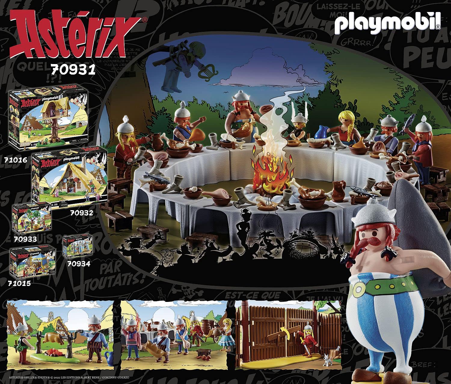 Wielki festyn wiejski Asterixa zaprasza dziecko do stworzenia wystawnej kolacji. Stół jest w stanie pomieścić aż osiemnastu biesiadników. Nie pozwól, aby tak wspaniała biesiada ominęła twoje dziecko! Jest rok 50 p.n.e. Galię w całości zajmują Rzymianie. Chociaż, nie do końca… jedna mała wioska nieposkromionych Galów Playmobil wciąż stawia czoła najeźdźcom. Niezastąpieni i nierozłączni przyjaciele Asterix, Obelix i Dogmatix planują kolejną przygodę, by udaremnić niecne poczynania swoich wrogów. Czy wyjdą z opresji cało? Czy uda im się przezwyciężyć trudności? O tak! Nasi dzielni bohaterowie zawsze wygrywają, bo trzymają się razem i doceniają wielką siłę przyjaźni. Zaś po potyczkach mężni wojownicy wracają na ucztę. W wiosce czeka ich suto zastawiony stół i wiwatujący Galowie.