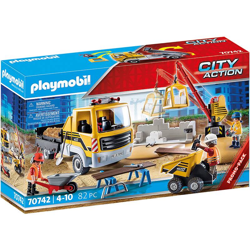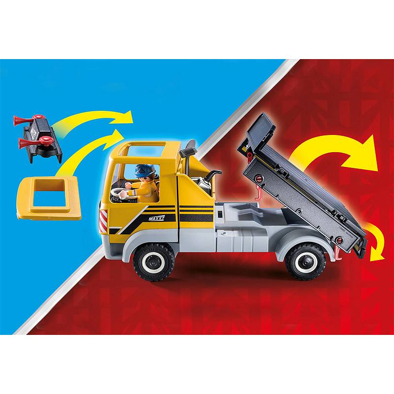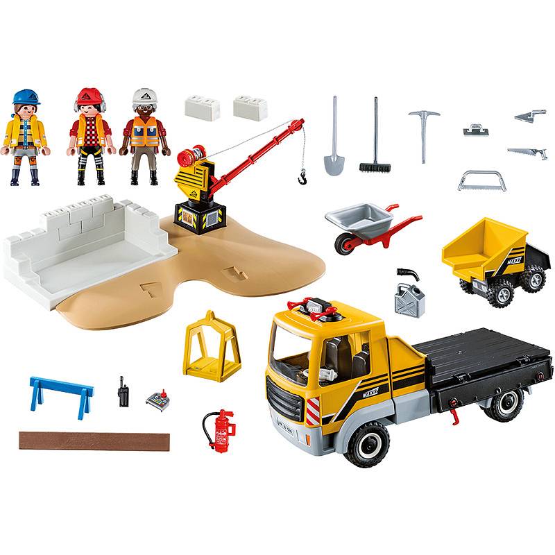 Na placu budowy zawsze dużo się dzieje, robotnicy mają pełne ręce roboty. Dzięki wywrotce, mini-wywrotce i dźwigowi załadunkowemu prace posuwają się naprzód. Każdy pracownik budowlany wykonuje swoim pojazdem inne zadanie: dźwig załadunkowy transportuje ciężkie kamienie do murowania, miniwywrotka usuwa wykop, a wywrotka jest używana do większych ilości ziemi i materiałów budowlanych. Dzięki świetnej współpracy ekipy budowlanej prace budowlane posuwają się naprawdę szybko!