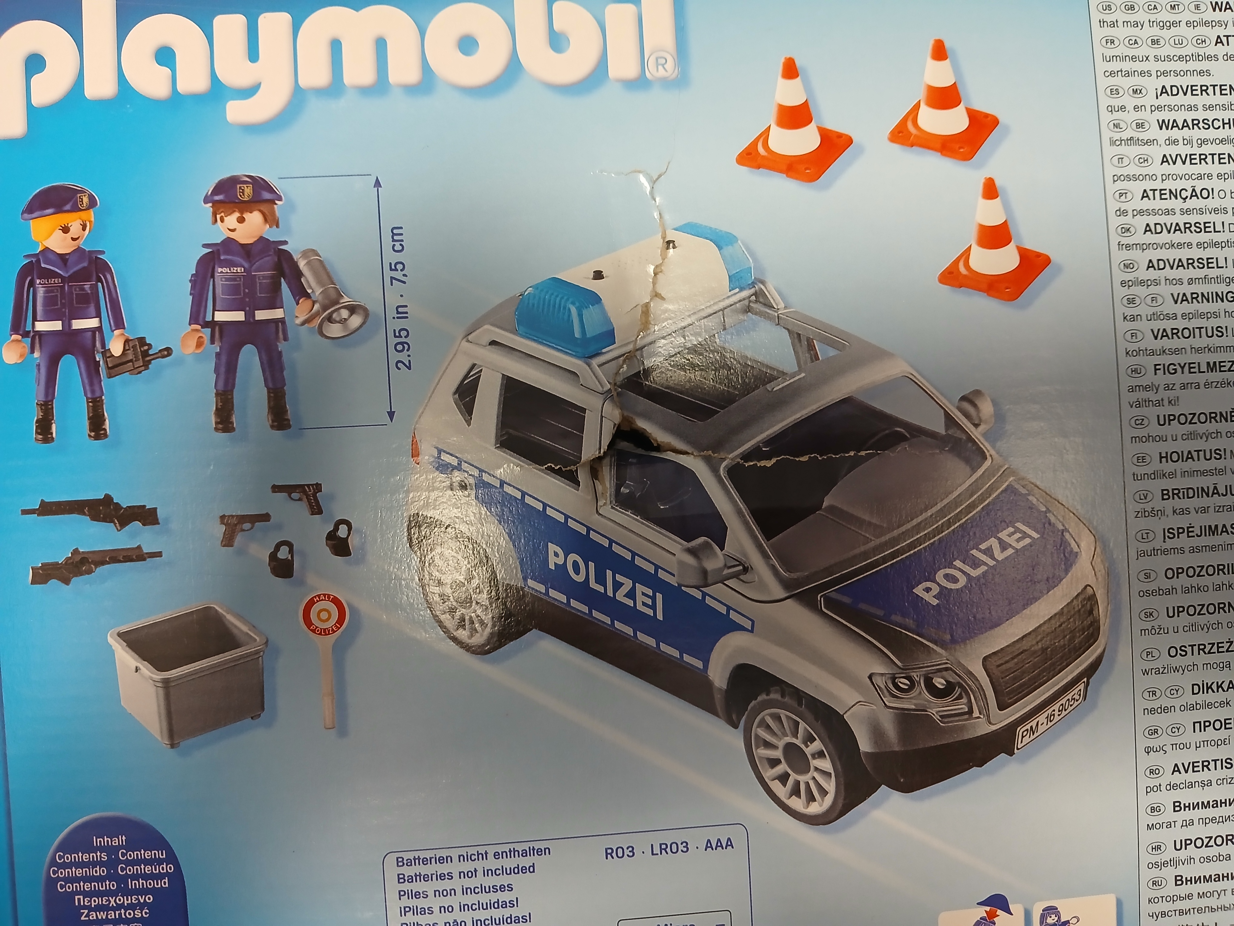 Playmobil City Action Policyjny samochód terenowy 9053 to świetny zestaw dla wszystkich małych fanów policji. Chcesz zostać policjantem jak dorośniesz? Po co czekać już teraz wciel się w postać tego dzielnego funkcjonariusza i ścigaj przestępców. Szybka akcja, niebezpieczne pościgi, poszukiwania skradzionych klejnotów oraz włamania do sejfów, to tylko niektóre z atrakcji, jakie czekają na małych fanów Playmobil. Wóz ma zdejmowany dach i przedni element zderzaka oraz otwierany bagażnik. Przyłącz się do pościgu za złodziejami i odbierz im skradzione skarby.
