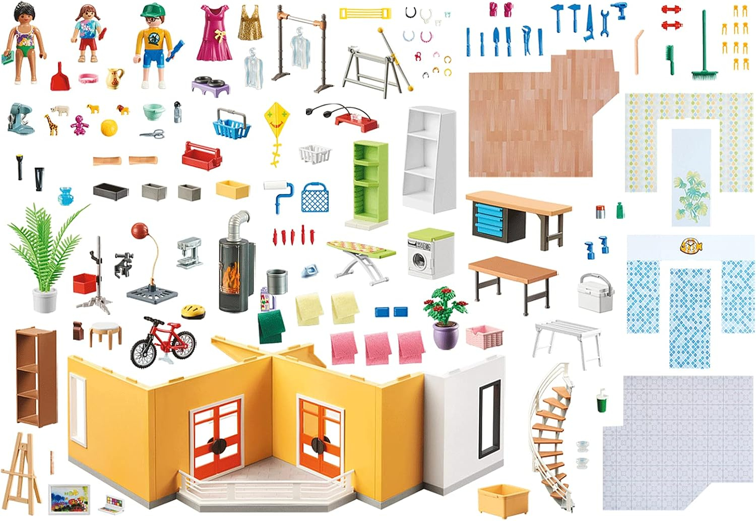 - akcesoria: 1 podłoga, 1 klatka schodowa, 1 deska do prasowania, 1 żelazko, 1