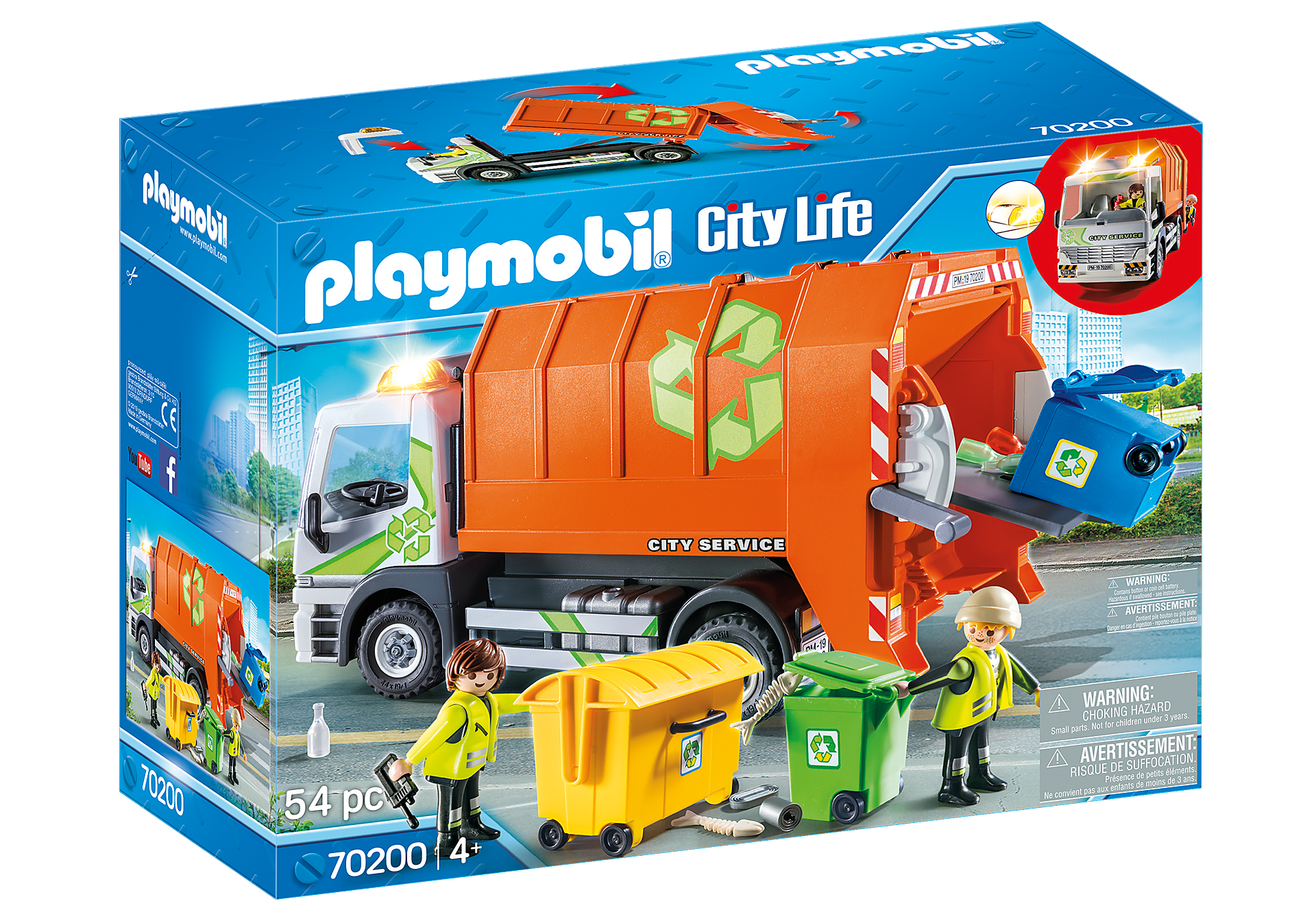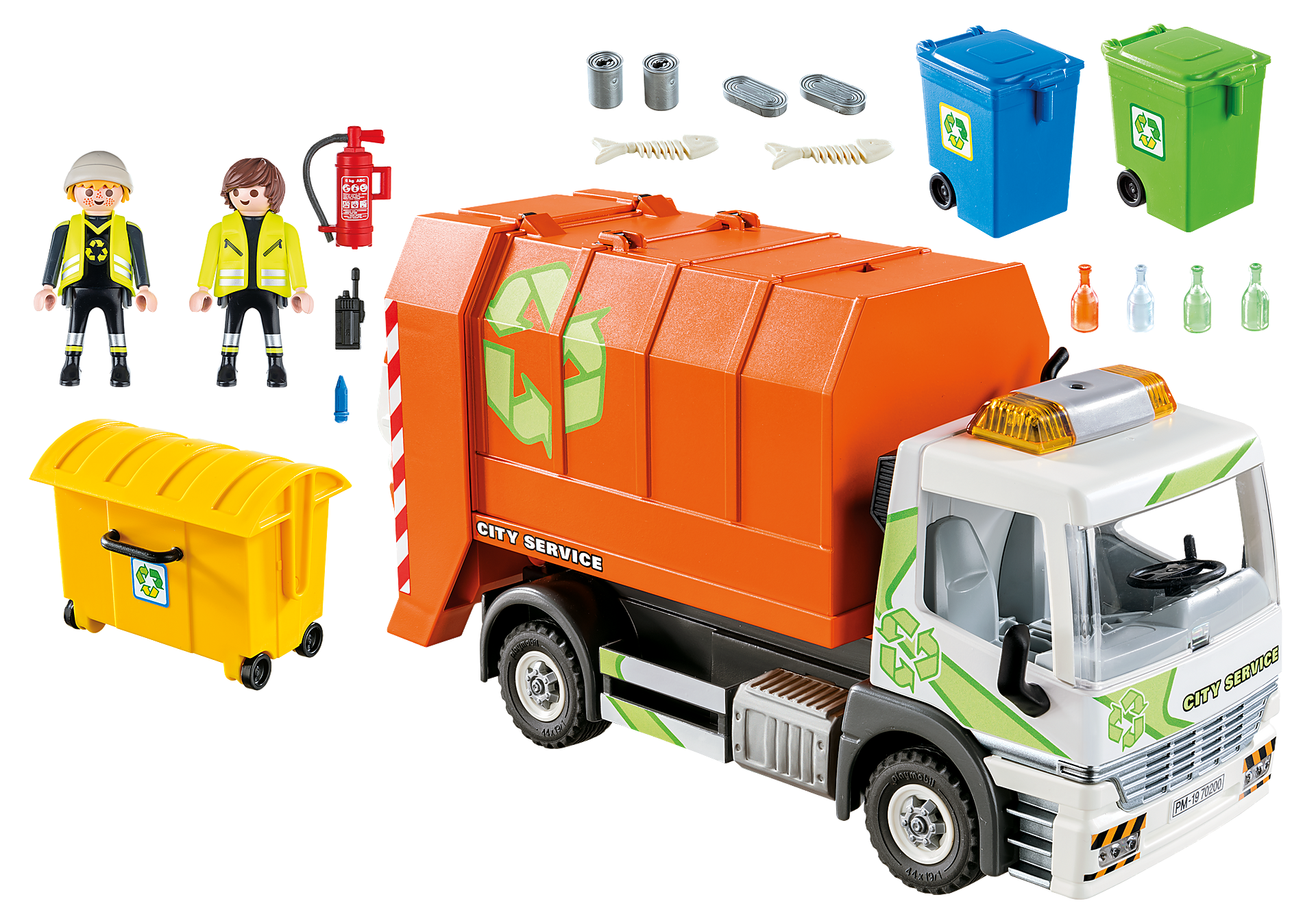 Playmobil sprzątanie miasta jest częścią serii City Life. W świecie Playmobil miasto jest zawsze czyste i zadbane. Wszystko to dzięki pomocy najlepszych fachowców, którzy posiadają najnowocześniejszy sprzęt. Zestaw zawiera śmieciarkę z opuszczanym kontenerem oraz działającymi światłami. Góra kabiny jest ściągana, aby można było umieścić w niej kierowcę oraz pasażera. Do zestawu dołączono także kubły na śmieci oraz dwie figurki. Z takim sprzętem ulice miasta na pewno będą utrzymane w czystości.