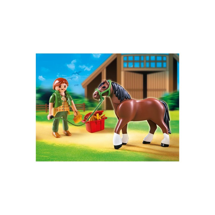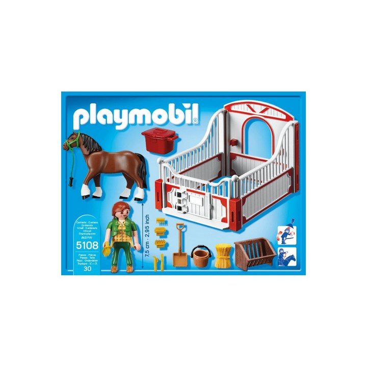 Playmobil Country Koń Shire z figurką Playmobil i odlotowym boksem stajennym. Specjalna tabliczka na boksie daje możliwość napisania imienia konia. Nowa seria sześciu bajecznych koni rasowych do kolekcjonowania. Zestaw zawiera figurkę jeźdzca, figurkę konia shire, biało-czerwony boks oraz akcesoria do opieki nad koniem.