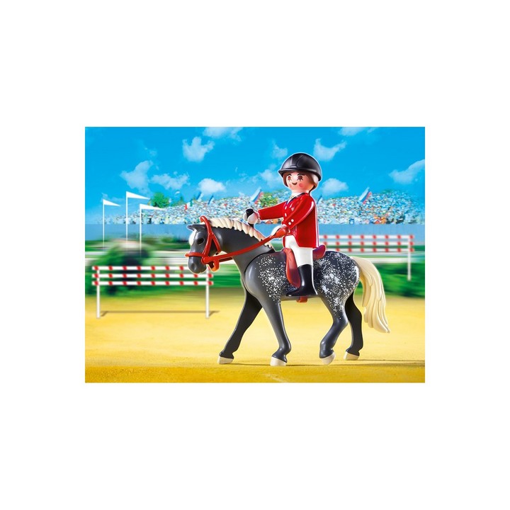 Playmobil Country Koń Trakeński z figurką Playmobil i odlotowym boksem stajennym. Specjalna tabliczka na boksie daje możliwość napisania imienia konia. Nowa seria sześciu bajecznych koni rasowych do kolekcjonowania. Zestaw zawiera figurkę jeźdzca, figurkę konia trakeńskiego, brązowo-żółty boks oraz akcesoria do opieki nad koniem.