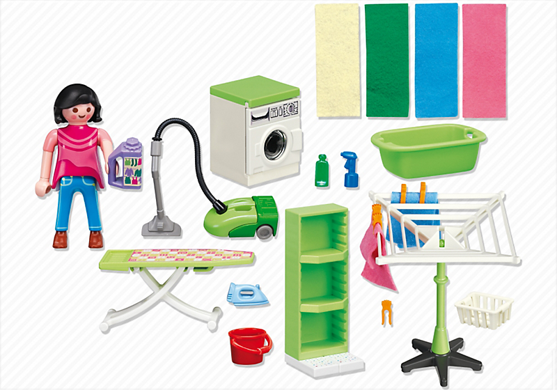 W tym zestawie Twoje dziecko znajdzie wszystkie niezbędne sprzęty jakie powinny znaleźć się w pomieszczeniu gospodarczym. Firma Playmobil zadbała o wszystkie, nawet najdrobniejsze szczegóły. Dlatego w pudełku znajdziesz klamerki na pranie oraz spryskiwacz z wodą, który ułatwi prasowanie.