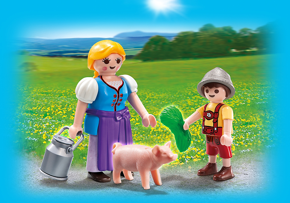 Dwupak z figurkami Playmobil. Życie na wsi jest pełne obowiązków. Gospodyni razem z chłopczykiem zajmą się farmą i zwierzątkami. Figurki są doskonałym uzupełnieniem naszej kolekcji Playmobil.