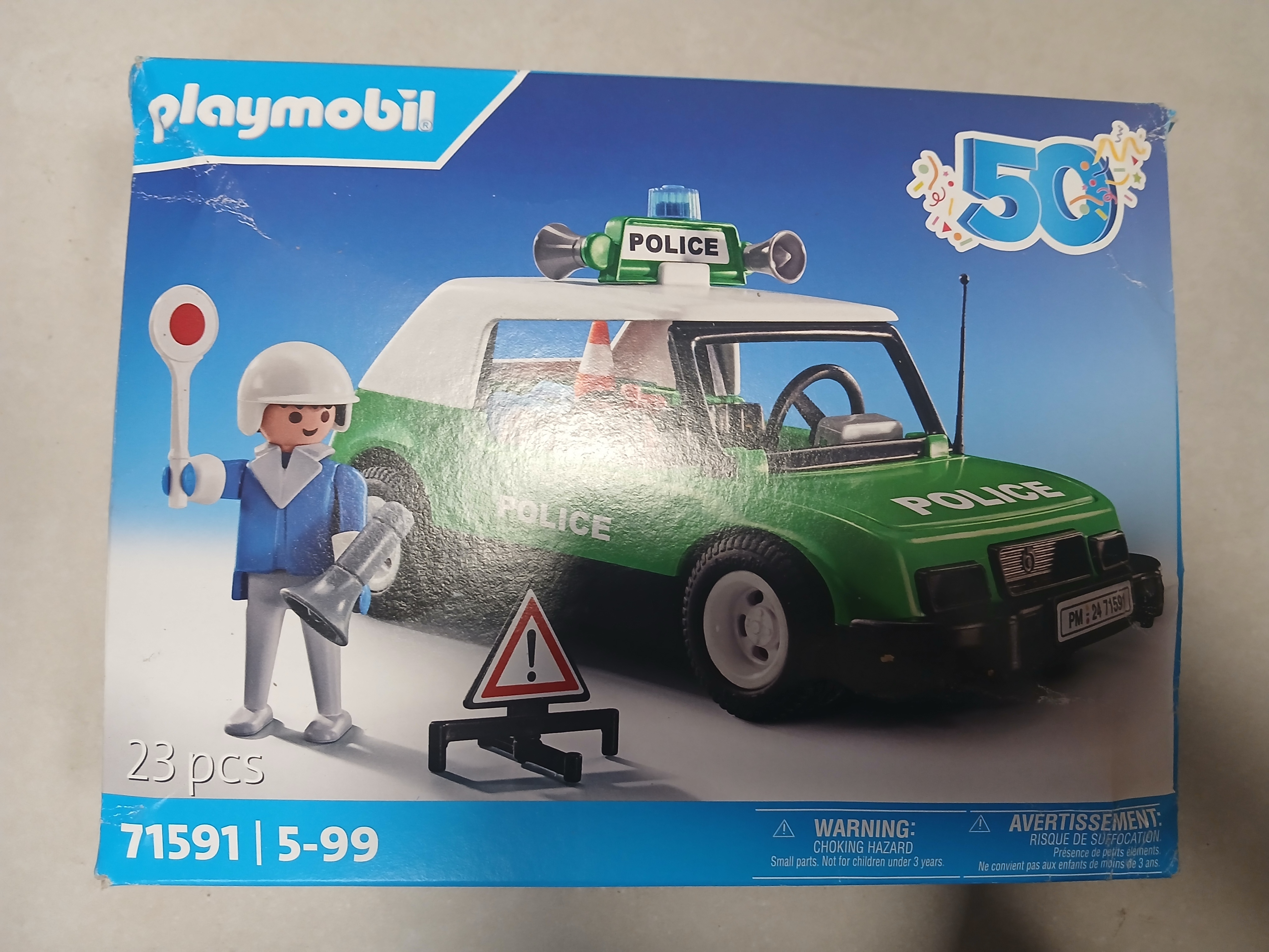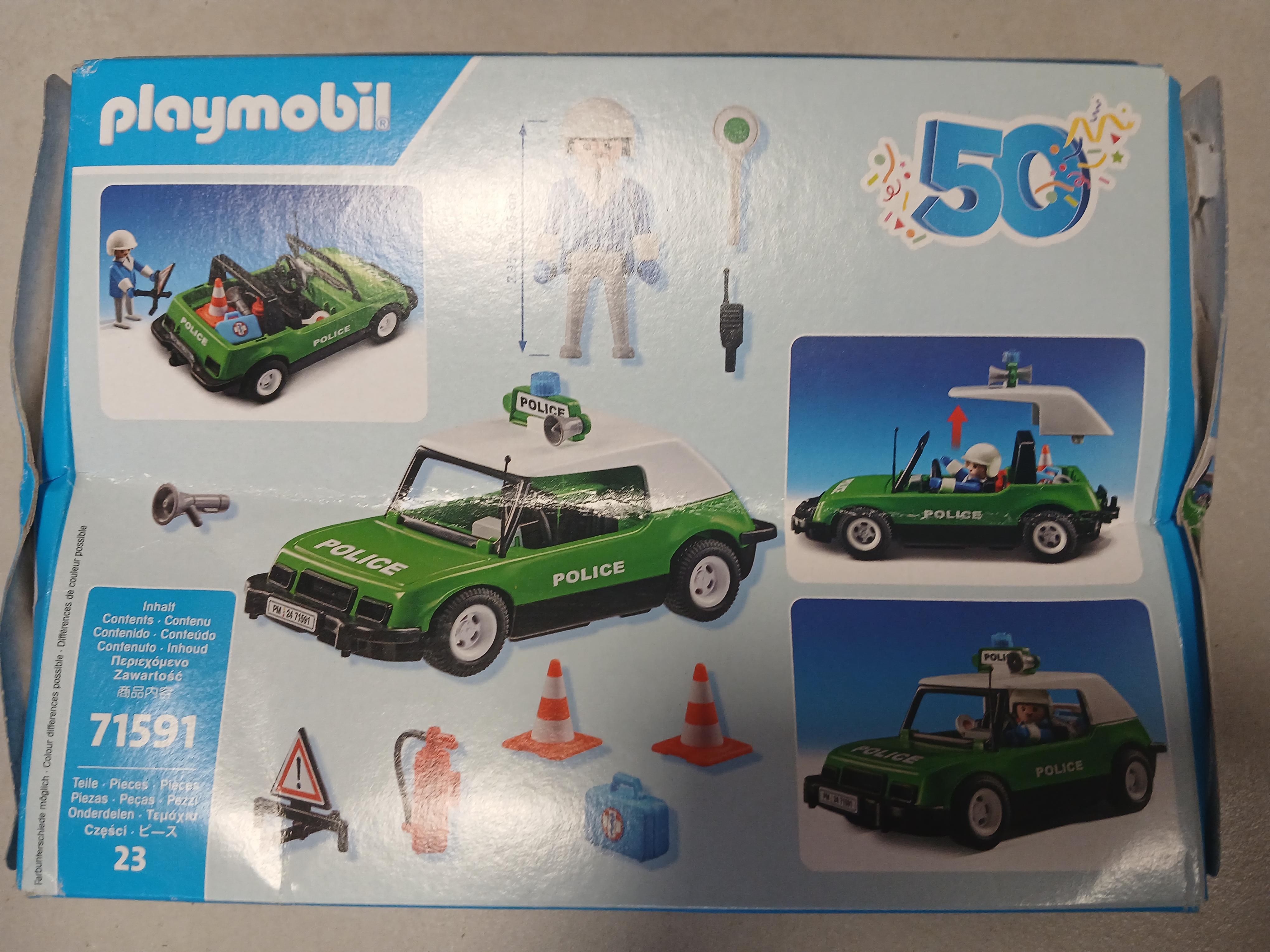 Towarzysz policjantowi w jego przygodach w klasycznym samochodzie policyjnym. Z akcesoriami, takimi jak pałka drogowa, gaśnica, trójkąt ostrzegawczy i wiele innych. Każdy pościg staje się wspaniałą przygodą! Jubileuszowy samochód PLAYMOBIL, wykonany w oparciu o legendarny samochód policyjny 3215 z roku 1977, doskonale oddaje urok minionych czasów. Nostalgiczny akcent dla kolekcjonerów i miłośników oldtimerów!