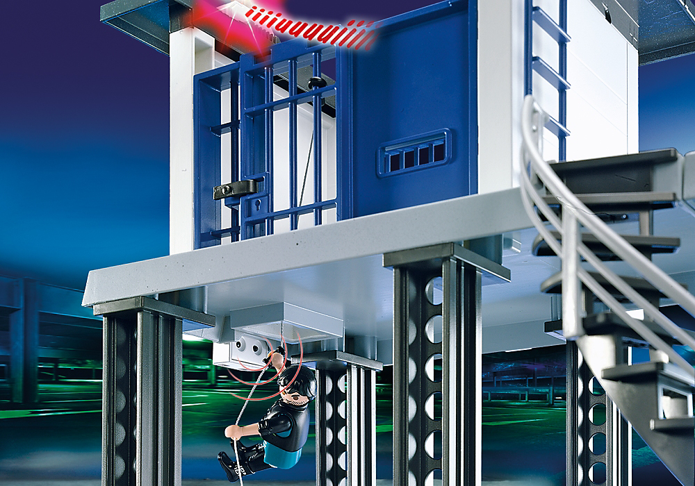 Playmobil Komisariat Policji 5182 to kompleksowa kwatera policji z działającym systemem alarmowym, czujnikiem ruchu, który uruchamia się gdy więzień próbuje opuścić cele. Na dachu znajduje się lądowisko dla helikoptera, a wewnątrz pomieszczenie biurowe i pokój, w którym robiene są zdjęcia przestępców.