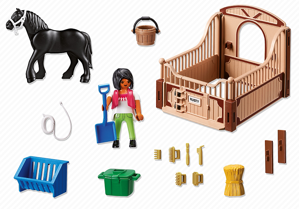 Playmobil Koń fryzyjski z brązowo-beżowym boksem 5519