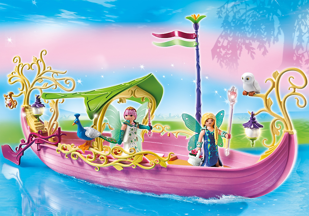 Bajkowa sceneria, wróżki, jednorożce, królewny przeniosą każdą małą księżniczkę w świat fantazji. Piękny i okazały statek Królowej Wróżek zabierze Cię w cudowny rejs po niesamowite przygody. Dzięki podwodnemu silnikowi statek naprawdę pływa! Co więcej lampka w kształcie kwiatu świeci w ciemnosci.