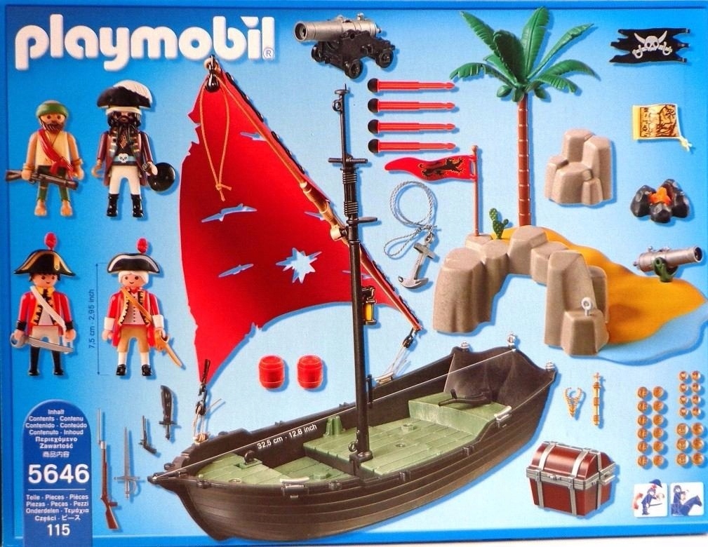 Playmobil Piraci Walka o złoty skarb 5646 ten zestaw przenie cię w niesamowity świat Piratów, statków i bezkresnych mórz. Jeśli zawsze marzyłeś o tym, aby zostać korsarzem, to teraz nadarza się najlepsza okazja. Wskakuj na statek i ruszaj w poszukiwaniu przygód i niesamowitych skarbów. Pływaj z dzielnymi piratami i poprowadź swoją załogę do zwycięstwa w każdej bitwie morskiej. A jeśli trafisz na wyspę pełną żołnierzy, to stocz walkę, aby zagarnąć cały skarb, którego pilnują czerwone kurtki.