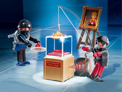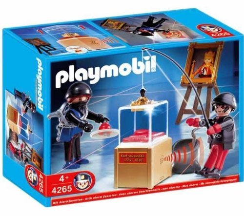 Seria Policja to nie tylko szybka akcja ale i niebezpieczne pościgi czy poszukiwania klejnotów i sejfu. To najbardziej popularna seria dla małych chłopców, pokazuje rzeczywistą pracę policjantów oraz ich obowiązki. Przyłącz się do pościgu za złodziejami i stwórz własną historię. Zestaw zawiera dwie figurki złodziei kliejnotów, gablotę z klejnotami oraz akcesoria potrzebne do włamania. Dodatkowo poruszenie witryny uruchamia alarm.