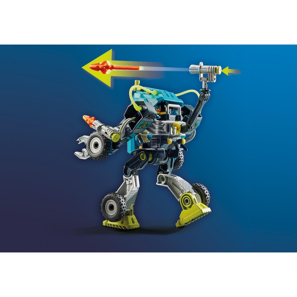 Weź udział w bitwie maszyn z zestawem Promo Pack Robot kontra szybowiec PLAYMOBIL. Zajmij miejsce na latającym szybowcu, z dwoma dyszami napędowymi i obrotowym działkiem, aby znaleźć się w centrum akcji. Robotem bojowym można swobodnie poruszać, wyposażony jest on w dwie armatki i drona. Jego kokpit można otwierać, aby umieścić w nim figurkę. Super zwrotnego robota bojowego można również przekształcić w pojazd w dwóch różnych wersjach. Pełna akcji zabawa z mnóstwem wspaniałych funkcji dla dzieci w wieku od 4 lat. Szczegółowo zaprojektowany zestaw zawiera dwie figurki PLAYMOBIL, latający szybowiec z funkcją strzelania, ruchomego robota z funkcją strzelania, drona i wiele innych akcesoriów.