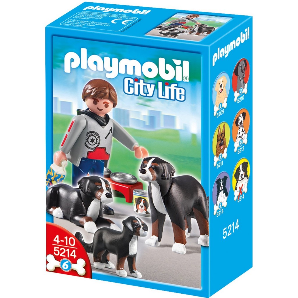 Hau, Hau! 6 ulubionych ras psów do kolekcjonowania. Zestaw zawiera 2 dorosłe psy oraz 1 szczeniaczka. Dodatkowy każdy zestaw wzbogacony jest figurką Playmobil.