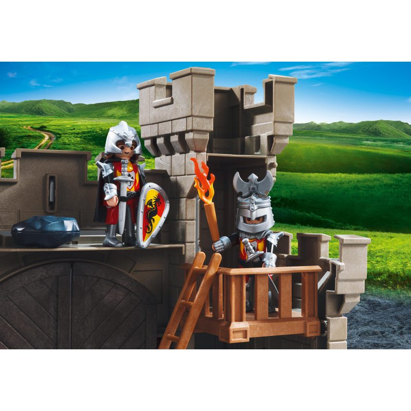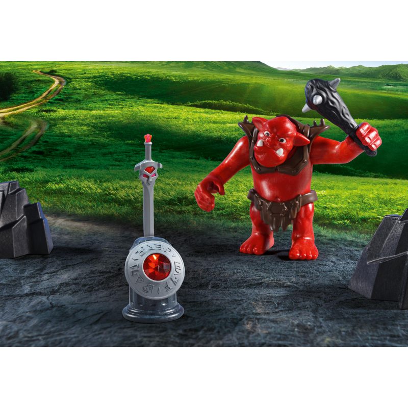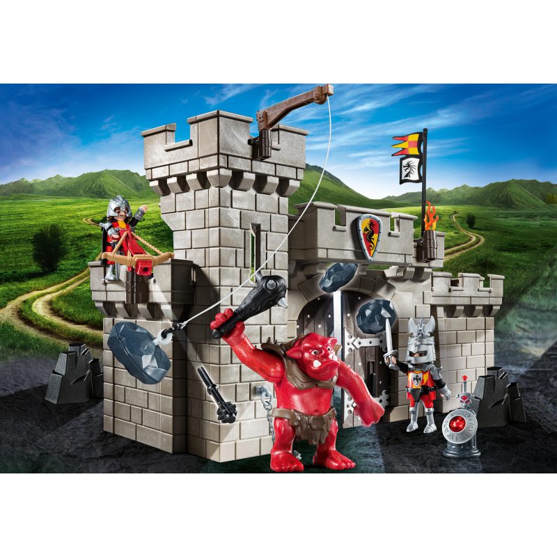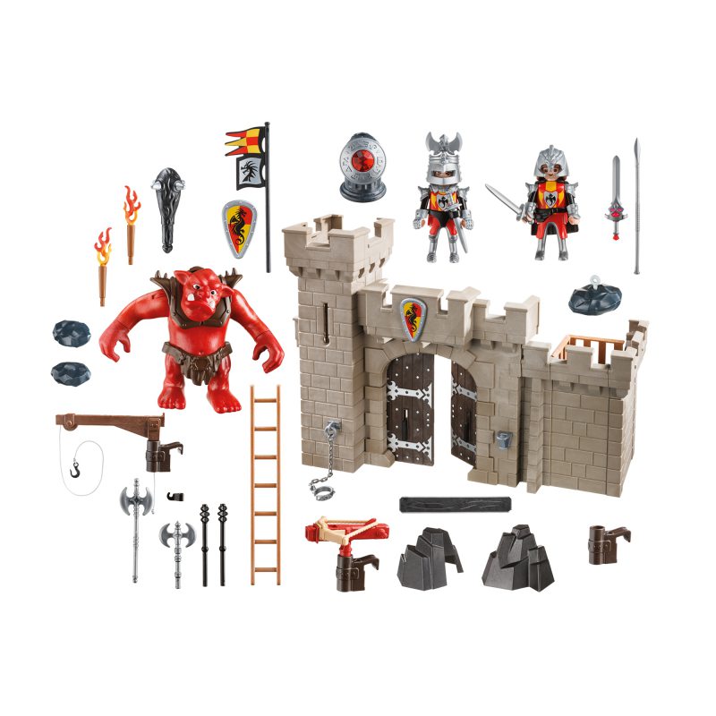 Playmobil Rycerze Brama zamkowa z olbrzymim trolem 5670 to zestaw dzięki, któremu przeniesiesz się do niesamowitego średniowiecznego świata zamków, dzielnych rycerzy, wielkich królów i wspaniałych legend. Możesz stworzyć swoje własne historie i zadecydować kto wygra a kto poniesie klęskę. Dzięki temu zestawowi twoi rycerze stoczą walkę z groźnym czerwonym trolem, postaraj się obronić zamkową bramę i zatrzymaj trola by nie przedostał się do środka.