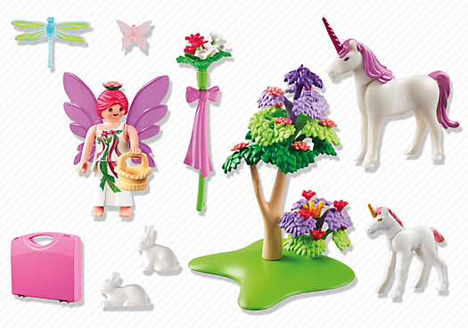 Zaczarowana kraina wróżek to zestaw stworzony z myślą o dziewczynkach, które uwielbiają świat magi i baśni. Bajkowa sceneria, wróżki, jednorożce, królewny przeniosą każdą małą damę do świata fantazji. Zestaw jest idealną propozycją na wyjazd. Zabawki można szybko schować do pięknej, różowej skrzynki.
