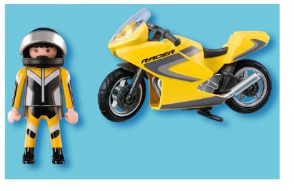 Playmobil Motocykl Wyścigowy z figurką Playmobil i efektownie chromowanymi częściami. Nowa seria sześciu odjazdowych motorów do kolekcjonowania.