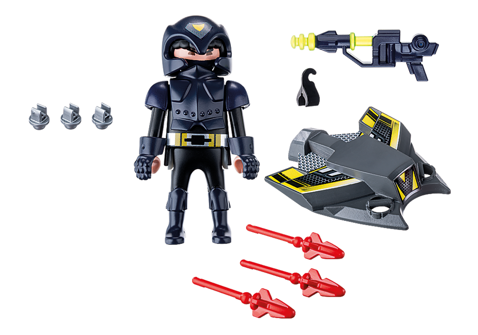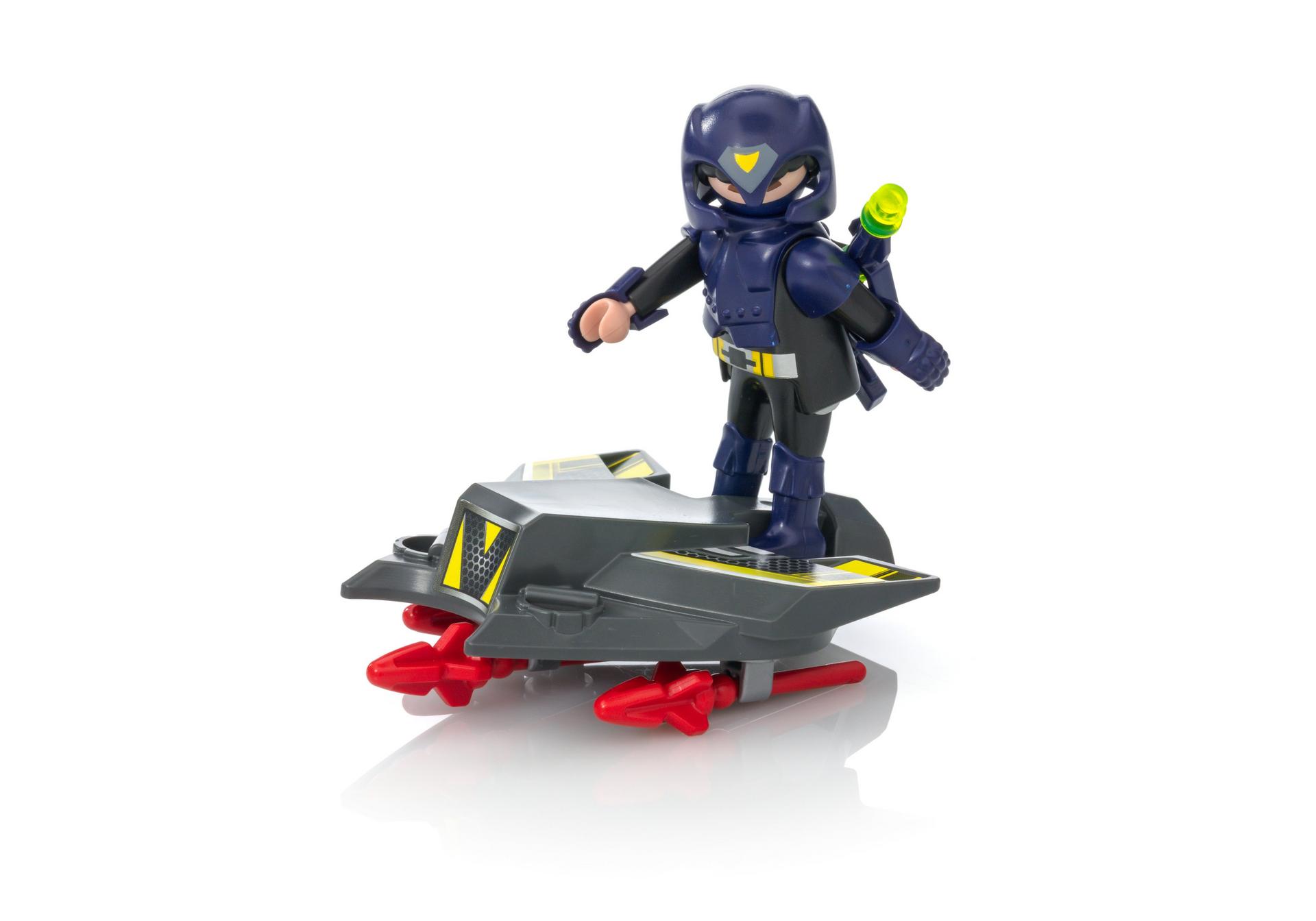 Przenieś się w przyszłość z zestawem PLAYMOBIL® Sky Knight! Wciel się w rolę podniebnego wojownika i chroń futurystycznego miasta. Stań na latającej desce z wyrzutnią i przygotuj się do nadzorowania bezpieczeństwa. Do dyspozycji masz także laserową broń - już sam jej wygląd zniechęci przeciwników i przestępców do złych uczynków!