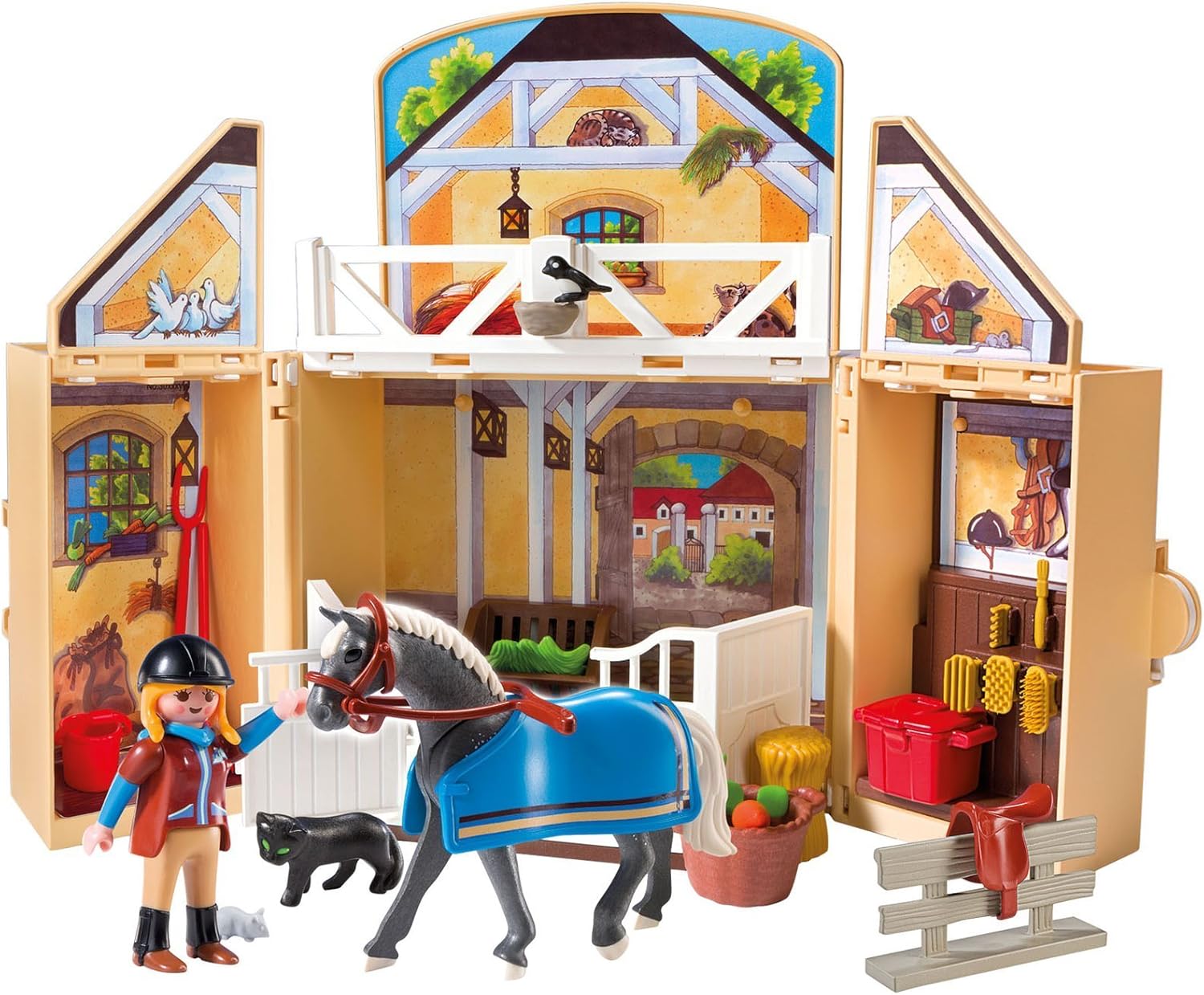 Zestaw zawiera pudełko z zabawkami, które można zamknąć na klucz. W środku znajduje się stadnina dla koni, koń, figurka opiekuna i inne akcesoria. Wśród nich wyróżnić można siodło, szczotkę, kota, myszy, sianko. Od dzisiaj stadnina koni będzie zawsze z toba. Można ją zabrać na wakacje czy w podróż.