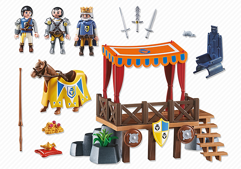 Królewski Trybun z Alexem zabierze Cię w ekscytujący i pełen napięcia świat turniejów rycerskich. Pora złożyć hołd królowi Henricowi i przystąpić do pojedynku. Sir Gareth czeka już z rycerską lancą na swym nieustraszonym rumaku. Pamiętaj, że nawet w trakcie takich turniejów ktoś może zaczaić się na skarb króla. Na szczęście Alex ma rozsuwany, ostry miecz, którym chroni tajną skrytkę na “Złoty Imbryk”, mieszczącą się w trybunie króla. Pora rozpocząć turniej!