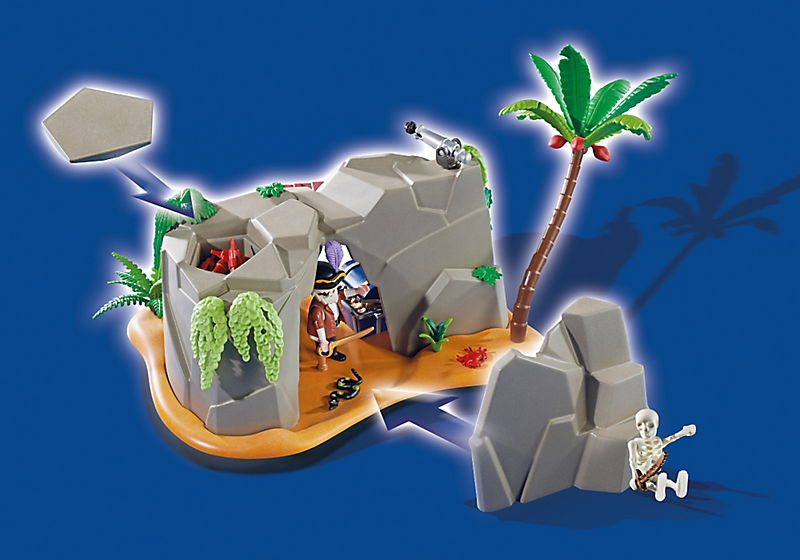 Piracka jaskinia to idealne miejsce dla piratów, aby ukryć swoją kolekcję skarbów. Jaskinia posiada zdejmowaną skalną ścianę. Piraci mają zapas dynamitu i kul armatnich by chronić swój cenny skarb przed grabieżcami! Uzbrojony pirat i przerażający szkieletor odstraszą każdego śmiałka, który zbliży się do wyspy!