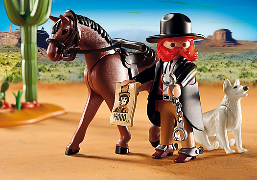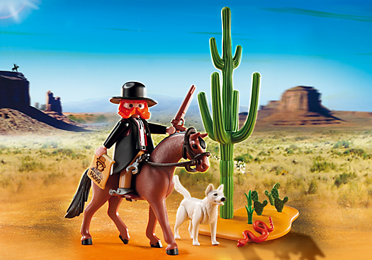 Seria Playmobil Western zabierze Cię w podróż na dziki zachód, gdzie trzymając się końskiej grzywy poznasz, smak suszonej wołowiny i tańców przy indiańskim ognisku. Brodaty Szeryf szuka niebezpiecznego bandyty, który jest poszukiwany listem gończym za napad na bank!