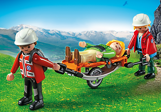 Seria Playmobil Wysokie góry pokazuje piękno oraz niebezpieczeństwo jakie możemy spotkać w górach. W wysokich górach może być niebezpieczne, ale w mikroświecie Playmobil pojawia się specjalna jednostka ratownictwa górskiego. W jej skład wchodzi między innymi ratownik górski z noszami.