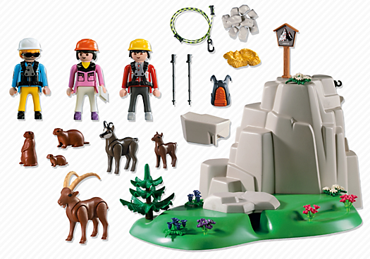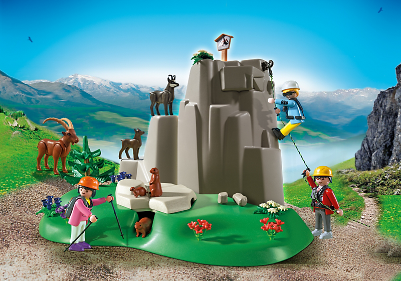 Seria Playmobil Wysokie góry pokazuje piękno oraz niebezpieczeństwo jakie możemy spotkać w górach. Zestaw skałki górskie zawiera nie tylko figurki Playmobil ale i zwierzęta, które żyją w górach. Dodatkowo jest tu książka do wpisów dla wspinaczy, którzy doszli na szczyt. Uwaga na kamienne lawiny!
