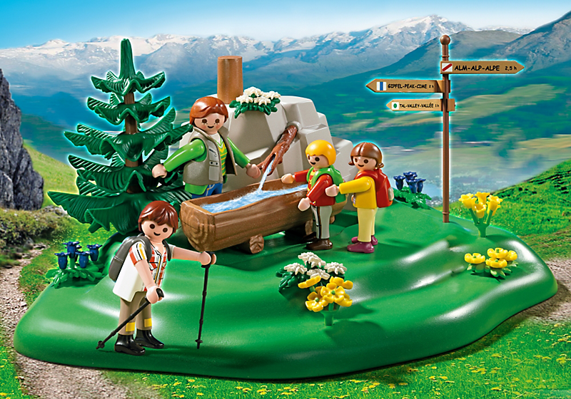 Seria Playmobil Wysokie góry pokazuje piękno oraz niebezpieczeństwo jakie możemy spotkać w górach. Zestaw wędrowiec u źródła rzeki doskonale obrazuje piesze wycieczki po górach. Dodatkowo po naciśnięciu skały woda naprawda płynie!