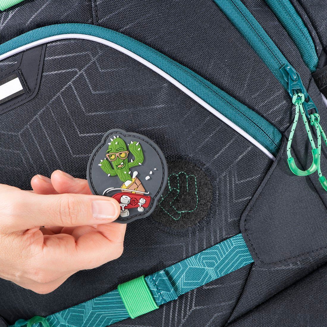 Plecak został wyposażony w system elementów wymiennych MatchPatch. Oznacza to, że uchwyty do zamków, zapinki i logo możesz w dowolnym momencie wymienić na nowe, w innym kolorze. Teraz możesz stworzyć unikalny plecak z dowolnym połączeniem barw. Jeśli Twój plecak Ci się znudzi, wystarczy, że jego elementy wymienne zastąpisz innymi, zyskując odświeżony plecak w nowej odsłonie.