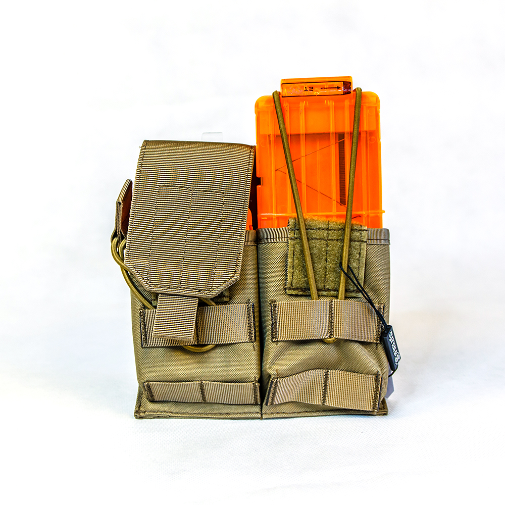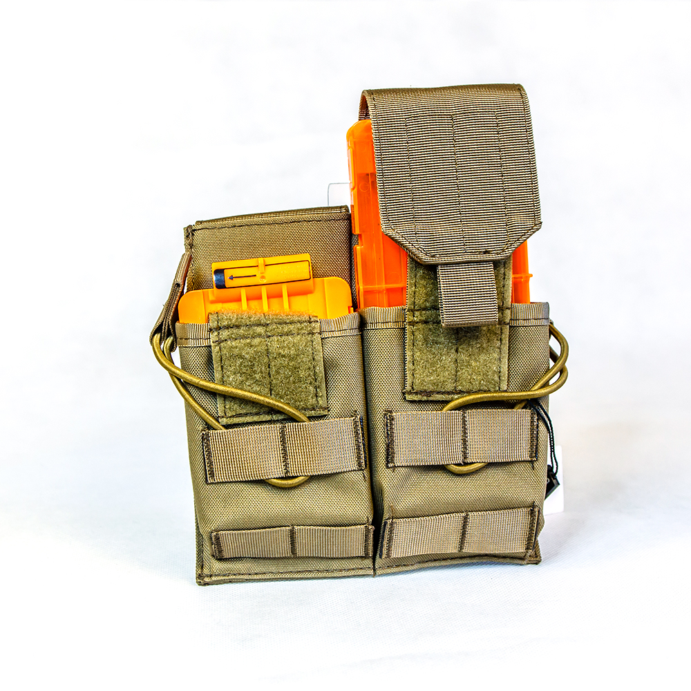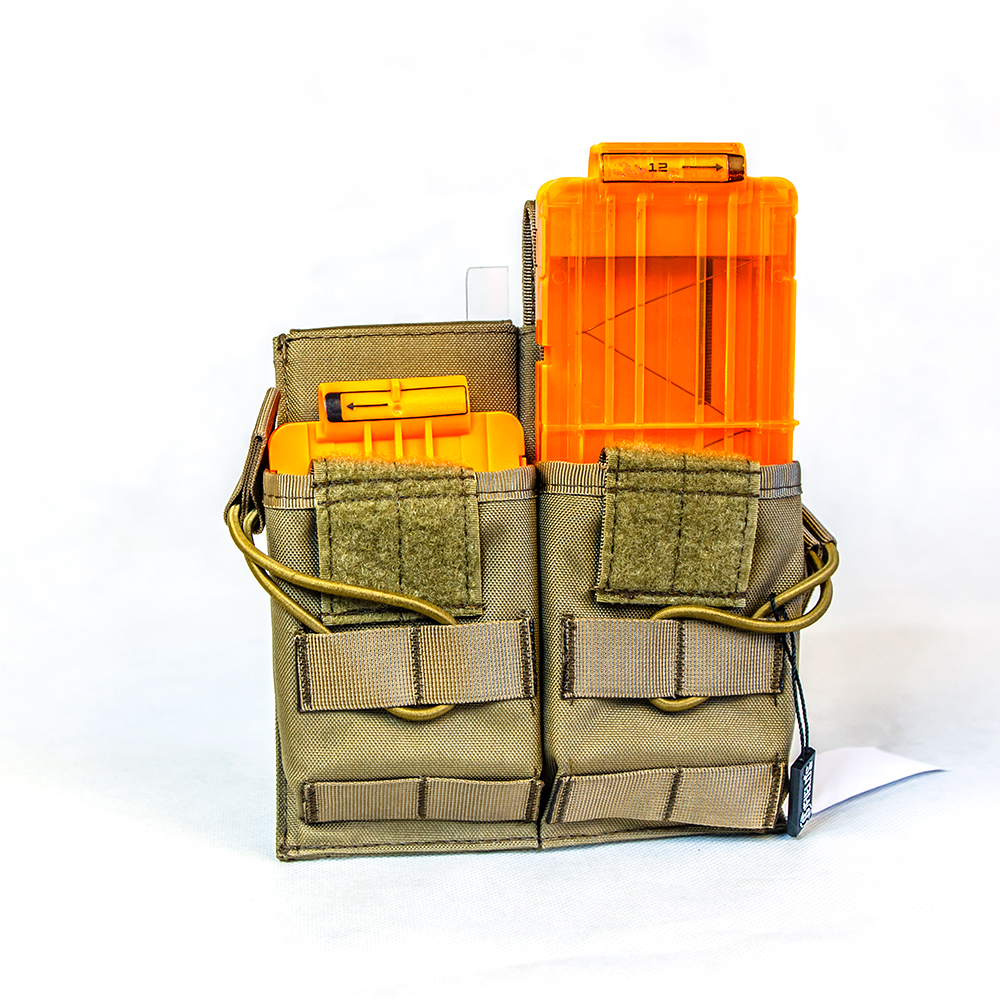 Idealne rozwiązanie do przenoszenia magazynków w terenie. Pozwala błyskawicznie wyciągnąć magazynek i umieścić go w wyrzutni. Do ładownicy wykonanej z nylonu idealnie pasują dwa magazynki Nerf Clip system. Zapięcia z tyłu pozwalają na łatwe zaczepienie jej do paska, a odczepiane klapy z przodu dają możliwość załadowania magazynku na 6 lub 12 strzałek. W przypadku większego magazynku dodatkowe zabezpieczenie przed wypadaniem stanowi gumowa linka.