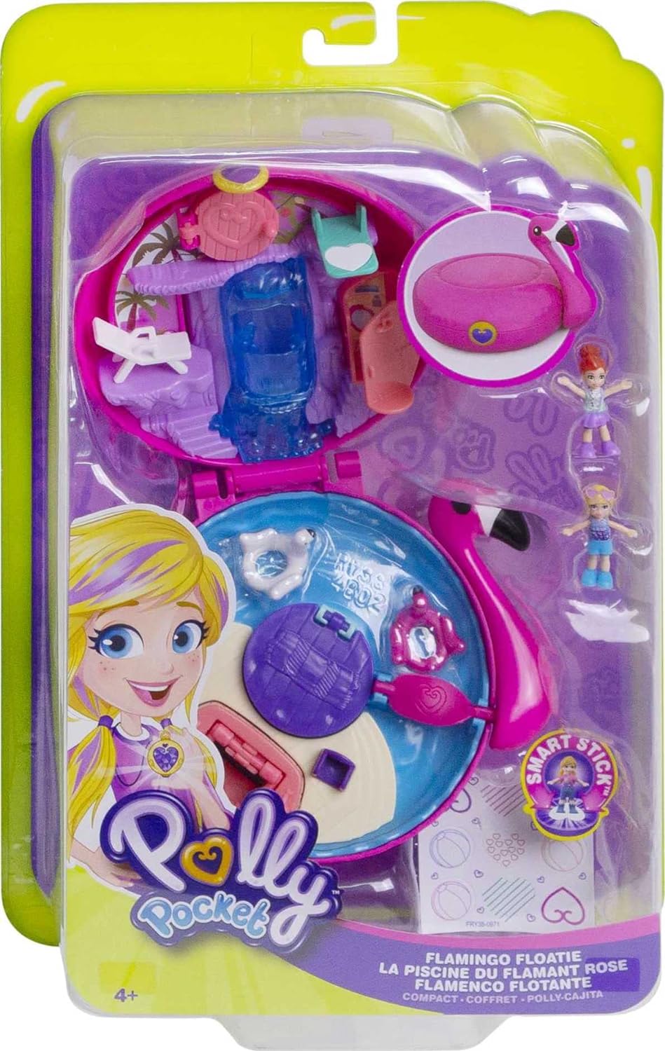 Zestaw w kształcie flaminga to zestaw basenu dla laleczek Polly Pocket. Jest tam basen, jacuzzi, wodospad i trampolina. Ale to nie wszystko co skrywa flaming - są różne drzwi, które kryją przebieralnie, sypialnie.