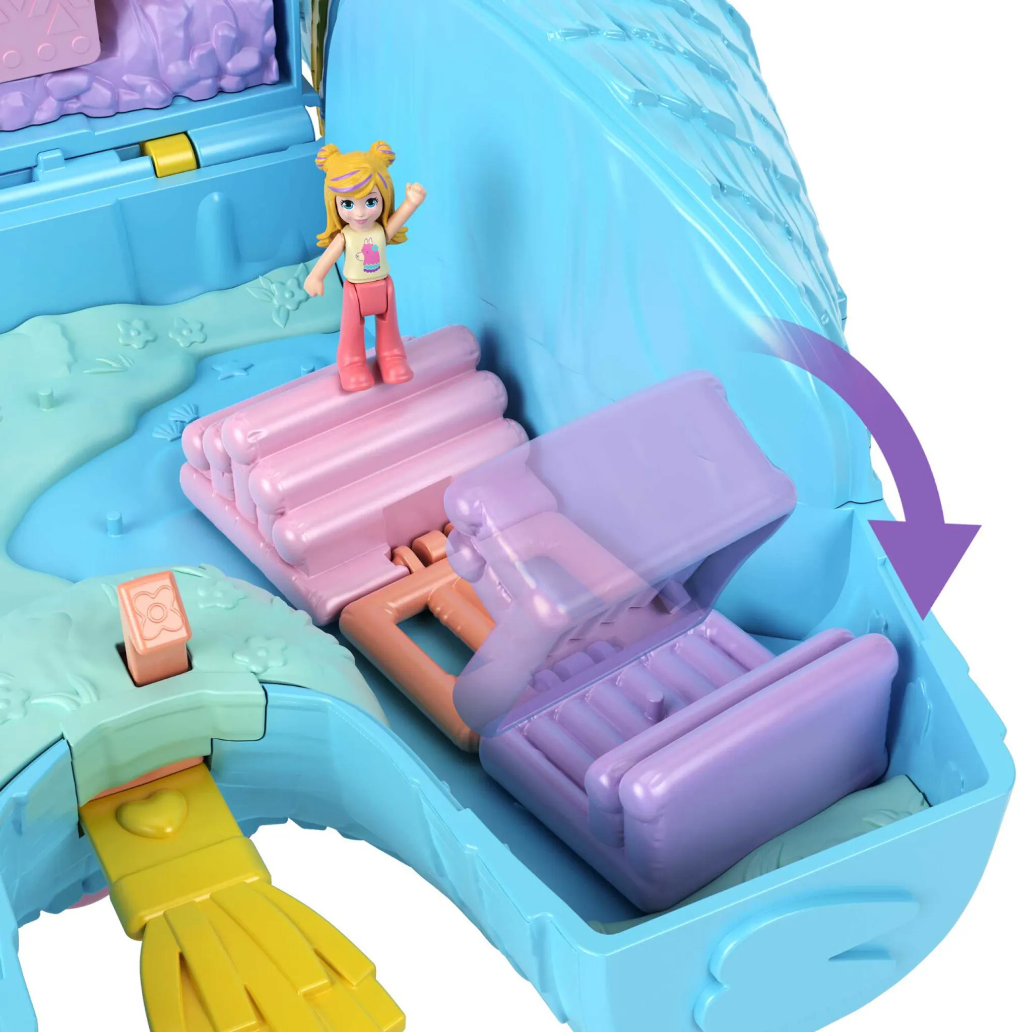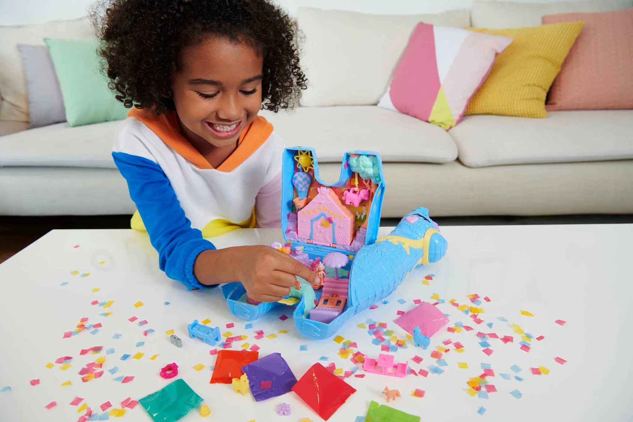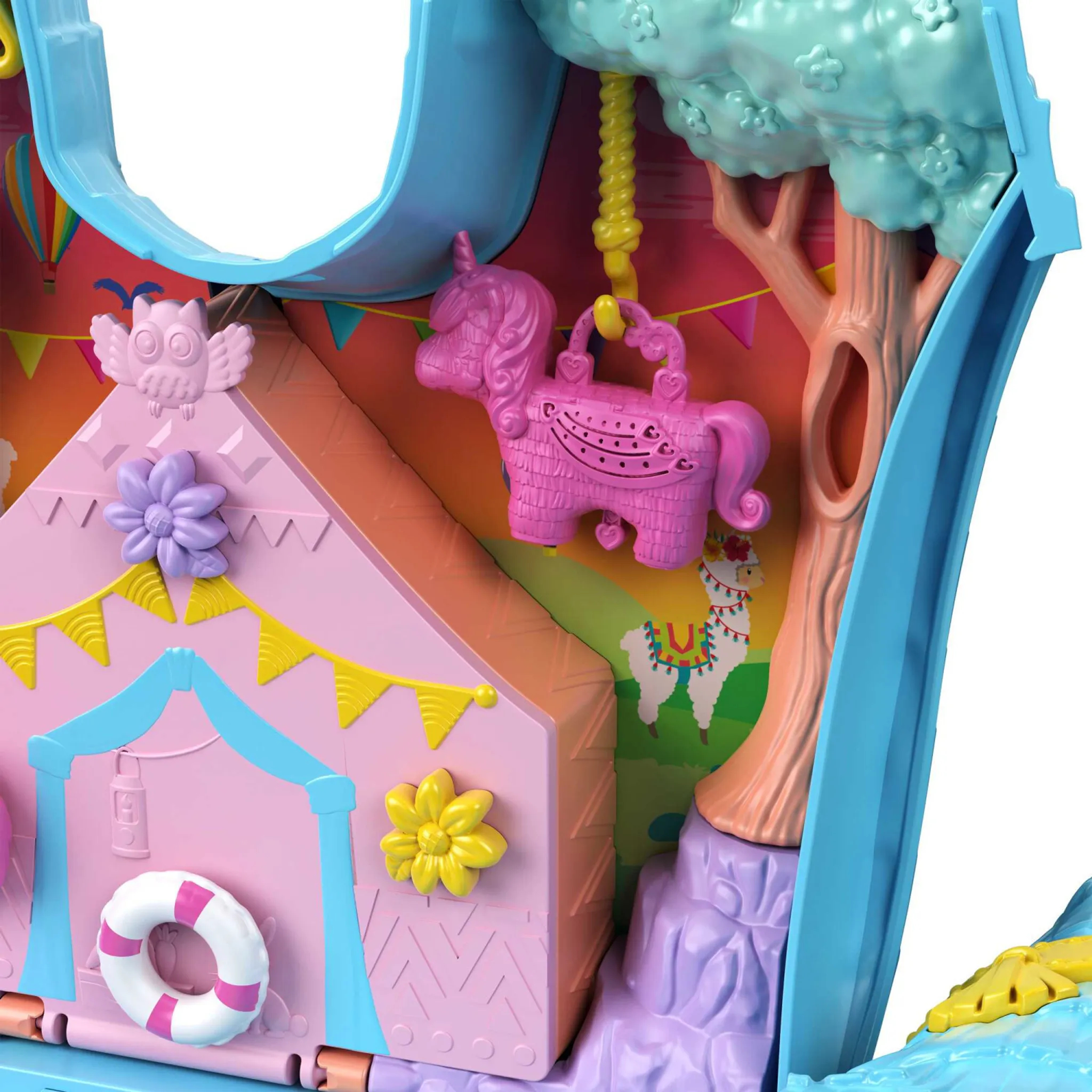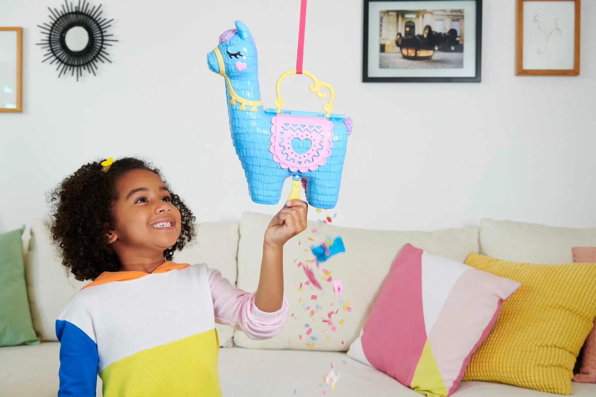 Witamy na Polly Pocket Llama Party! Czas na piżamę, gry, harce i zabawę. Więcej zabawy nie jest możliwe! Ten zestaw ma kształt uroczej lamy, a także uchwyt - idealny do podróży! Wystarczy pociągnąć za złoty sznurek i obserwować, jak z zestawu wypada kolorowe konfetti i ponad 25 niespodzianek. Gdy dzieci otworzą zestaw do zabawy, rozpocznie się zabawna przygoda z 2 małymi lalkami i mnóstwem innych zabawnych odkryć!
