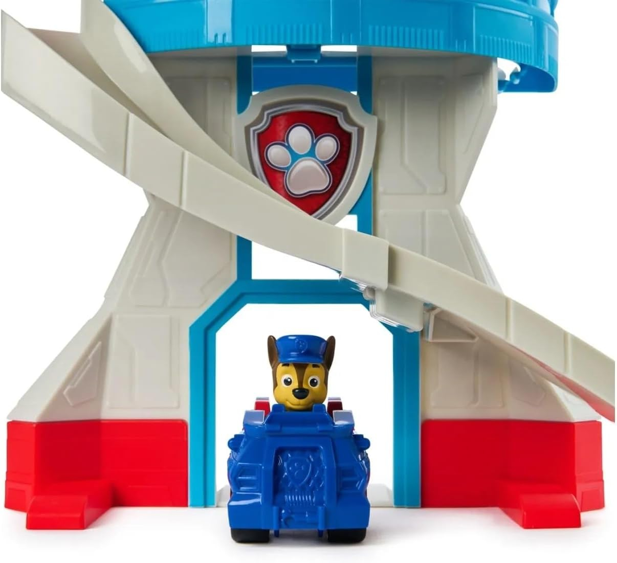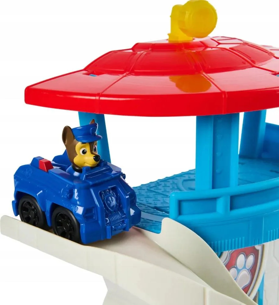 Bohaterowie Psiego Patrolu uwielbiają swoją bazę. To tutaj spotykają się wszystkie psiaki, by omówić najważniejsze zagadnienia oraz by kontrolować i patrolować całą okolicę. Zestaw zawiera wieżę obserwacyjną, którą znasz z serialu, a także policyjny radiowóz Chase'a. Dzięki wysokości ponad 25 cm, masz wszystkie przygody w zasięgu wzroku. Kiedy nadchodzi czas na ekscytującą misję, Chase może ustawić swój samochód wyścigowy na rampie i ruszyć do kolejnej ekscytującej misji ratunkowej!