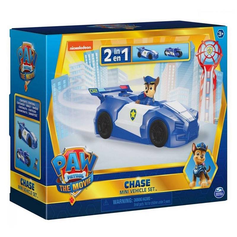 Połącz siły z Chase'm, aby przeprowadzić szybką akcję ratunkową z Psim Patrolem i zestawem małych pojazdów. Ten zestaw zawiera minifigurkę Chase'a i jego pojazd 2w1. Chase jest gotowy do akcji w swoim nowym stroju z filmu Psi Patrol. Autentyczne detale znane z dużego ekranu i kręcące się koła w motocyklu ożywiają filmową akcję. Gdy Miasto Przygód jest w niebezpieczeństwie, wsadź Chasea za kierownicę i ruszaj na misję! Użyj wyobraźni, aby odtwarzać znane akcje i wymyślać nowe. Jeśli musisz się przecisnąć przez wąski przejazd, podnieś nadwozie krążownika, aby odsłonić motocykl Chase'a i ruszaj do działania! Złóż karoserię pojazdu z powrotem, aby wrócić do trybu krążownika. Ten zestaw zabawka z figurką to doskonały prezent dla chłopców i dziewczynek. Aby odkryć jeszcze więcej filmowych akcji ratunkowych. Baw się razem z zestawem małych pojazdów z filmu Psi Patrol.
