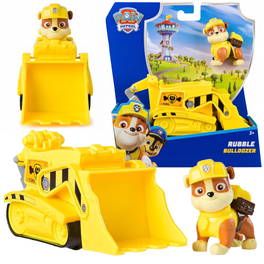 Wyrusz na ratunek z drużyną przesympatycznych szczeniaków. Zestaw zawiera wyjątkowy pojazd buldożer z ruchomą łyżką oraz wiertłem i kołami. W zestawie znajduje się także a także figurka Rubble. Piesek ubrany jest w żółty kubraczek z plecaczkiem oraz czapeczkę. Zestaw z całą pewnością spodoba się każdemu miłośnikowi perypetii grupy bohaterskich szczeniaków z serii Psi Patrol.