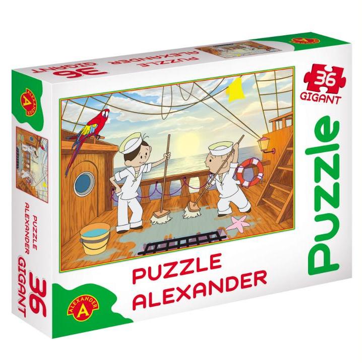 "Puzzle Alexander" rozwijają zdolności manualne, pobudzają ciekawość, spostrzegawczość oraz zdolność kojarzenia Układanie puzzli to dla dzieci dobry trening zręczności, myślenia, percepcji i właściwego kojarzenia koloru i kształtu. Z 36 elementów układanki można ułożyć obrazek o wymiarach 97 x 66 cm.