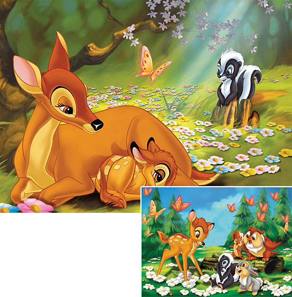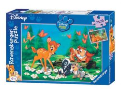 Puzzle Ravensburger Mój Przyjaciel Bambi 2x20 elementów umożliwiają ułożenie dwóch obrazków. Na każdym z nich widnieje główny bohater tej trzymającej za serce opowieści Disneya o małym jelonku. Jeden obrazek ukazuje Bambiego ze swoją mamą, a na drugim możemy zobaczyć Bambiego bawiącego się na łące w gronie swoich najlepszych przyjaciół. Czas zacząć wciągającą zabawę z puzzlami Mój Przyjaciel Bambi. Wystarczy połączyć 20 elementów układanki i gotowe!