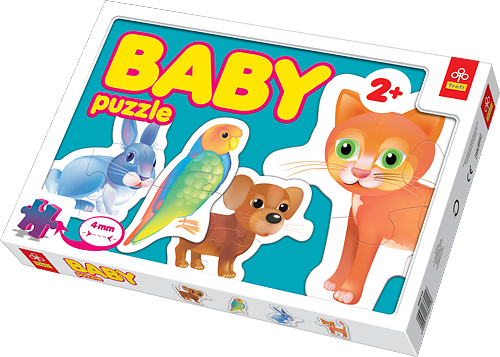 Puzzle Trefl Baby Zwierzęta to wesoła układanka dla najmłodszych. Charakteryzuje się wyraźnymi kolorami oraz prostym wzornictwem. Duże elementy sprawiają, że każdy z łatwością dopasuje poszczególne elementy obrazka. W pudełku znajdują się 4 puzzle konturowe, które kolejno podzielone są na 2,3 lub 4 klocki puzzlowe. Umożliwiają one ułożenie 4 obrazki zwierzątek z farmy: papugi, pieska, kotka i zajączka.