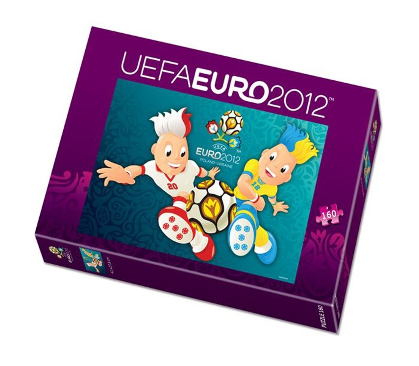 Puzzle 160 elementów z obrazkiem maskotek z Euro. Wysoką jakość, nasycenie kolorów i bezpieczeństwo układania zapewnia kalandrowany papier odbijający światło, pokryty ekologicznymi farbami spożywczymi.