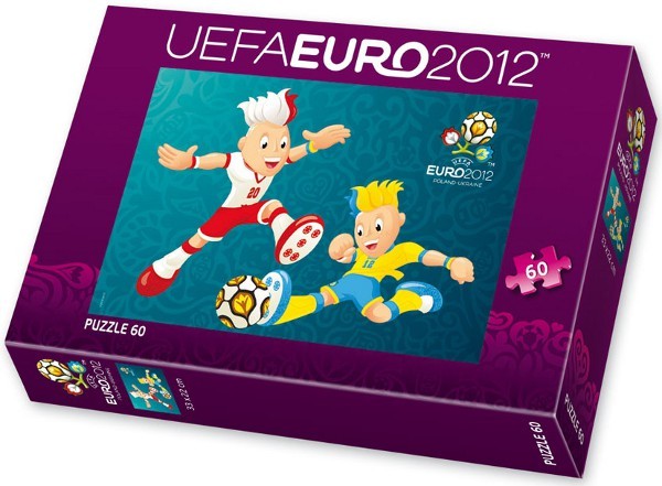 Puzzle Trefl Euro 2012 60 elementów pozwalają na ułożenie obrazka przedstawiającego oficjalne maskotki piłkarskich mistrzostw Europy w 2012, które rozegrana zostaną na stadionach w Polsce i Ukrainie. Slavek i Slavko bo tak mają na imię już trenują do zbliżającego się turnieju. Po złożeniu puzzli Trefl Euro 2012 60 elementów na własne oczy przekonasz się jaką frajdę sprawia im gra w piłkę nożną.