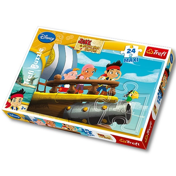 Puzzle Trefl Maxi Jake i Piraci Nibylandii 24 elementy umożliwiają ułożenie obrazka przedstawiającego bohaterów tej wesołej bajki. Ułóż wszystkie 24 elementy by zobaczyć jak wszyscy trzej bohaterowie stoją na dziobie statku wypatrując nadchodzących przygód. W trakcie zabawy dzieci dodatkowo rozwijają zdolności manualne, spostrzegawczość oraz umiejętność samodzielnego tworzenia.