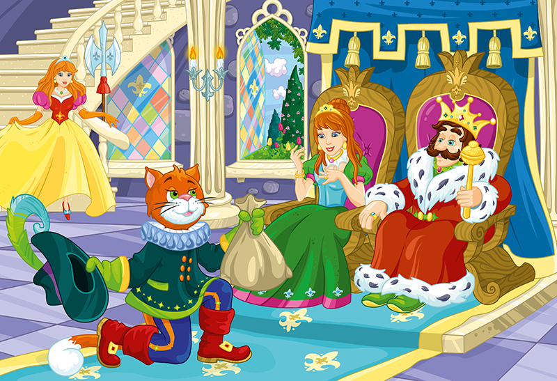 Puzzle Kot w Butach 100 elementów pozwalają na ułożenie obrazka przedstawiającego tytułowego bohatera stojącego przed majestatem Króla i Królowej. Połącz ze sobą wszystkie elementy by zobaczyć jak Kot w Butach ofiaruje władcy krainy króliki i przepiórki w imieniu swojego pana Markiza de Karabasza. Do tego żywe kolory i wesoła grafika dodatkowo umilą czas spędzony przy układance.