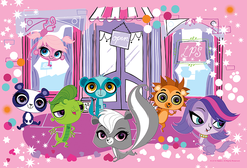 Zestaw 2 układanek 50 elementowych z bohaterami serialu "Littlest Pet Shop". Po ułożeniu powstaną obrazki o wymiarach 32 x 21,5 cm. Wysoką jakość, nasycenie kolorów i bezpieczeństwo układania zapewnia kalandrowany papier odbijający światło i wykorzystanie materiałów ekologicznych.