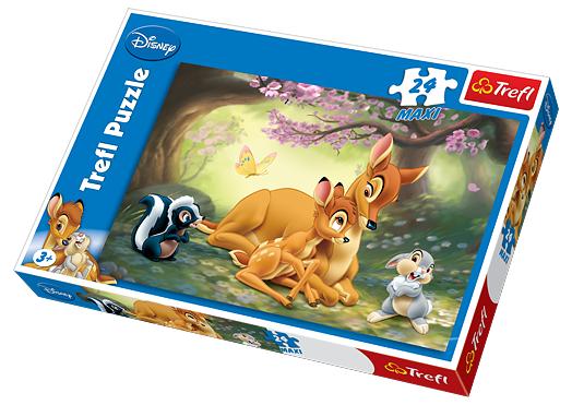 Puzzle Trefl Maxi stworzone specjalnie z myślą o dzieciach powyżej 3. roku życia. Układankę tworzą 24 bardzo duże puzzlowe elementy, dzięki czemu młodsze dzieci poradzą sobie z samodzielnym ułożeniem obrazka. Zabawa rozwija zdolności manualne, spostrzegawczość i daje radość samodzielnego tworzenia. Piękna grafika w stylu Disneya sprawi radość miłośnikom jelonka Bambi.