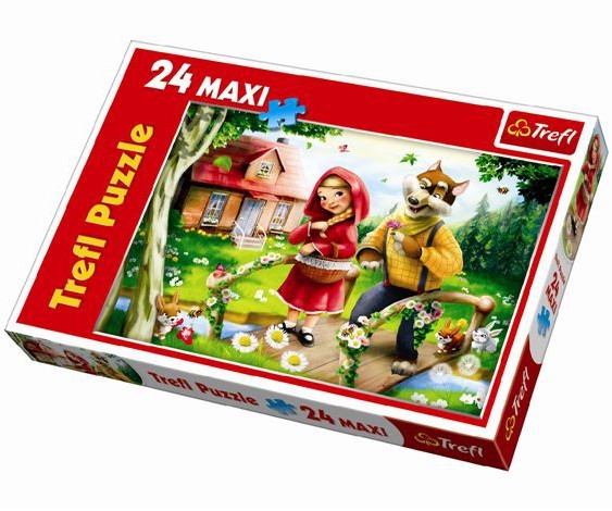 Puzzle Trefl Maxi Czerwony Kapturek 24 elementy pozwala na ułożenia obrazka przedstawiającego dwóch głównych bohaterów bajki o Czerwonym Kapturku. Tak jak w bajce dziewczynka zanosząca koszyk z łakociami dla babci spotyka na swojej drodze wilka, który wypytuje ją o cel spaceru. Całość obrazka utrzymana jest w bardzo malowniczej scenerii. Jeśli chcesz dowiedzieć się jak skończyło się to spotkanie koniecznie ułóż puzzle Trefl Maxi Czerwony Kapturek. Dodatkowym plusem puzzli Trefl Czerwony Kapturek z serii Maxi jest fakt iż posiadają one 24 duże elementy ułatwiające układanie dzieciom obrazka.