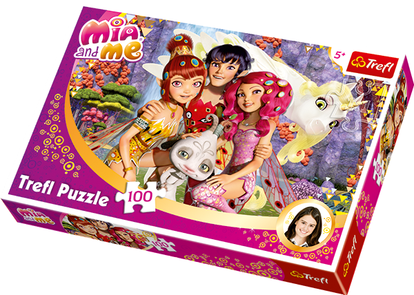 Puzzle 100 elementów z bohaterkami serialu animowanego "Mia and Me". Po ułożeniu powstanie obrazek o wymiarach 41 x 27,8 cm. Wysoką jakość, nasycenie kolorów i bezpieczeństwo układania zapewnia kalandrowany papier odbijający światło i wykorzystanie materiałów ekologicznych.