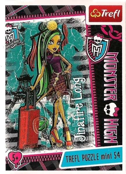 Puzzle Monster High Mini to wspaniała układanka dla dziewczyn zamknięta w małym, wygodnym opakowaniu. Dzięki temu z łatwością mieszczą się w dziecięcym plecaku lub na półce z zabawkami. Po ułożeniu wszystkich 54 elementów powstanie obrazek przedstawiający jedną z upiornych uczennic Straszyceum - Jinafire Long. Do tego potworna grafika puzzli czyni je prawdziwą gratką dla fanów serii Monster High.